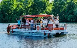 Soak in the sunshine and breathtaking views of the Richmond skyline on a “floating bar” on the James. In addition to a unique panoramic perspective of Richmond’s skyline, passengers will enjoy the ambiance of nearby bike trails, waterfront restaurants, and luxury apartments before cruising further downriver into a wooded oasis that plays home to a vast variety of wildlife from eagles to sturgeon and many others in between.